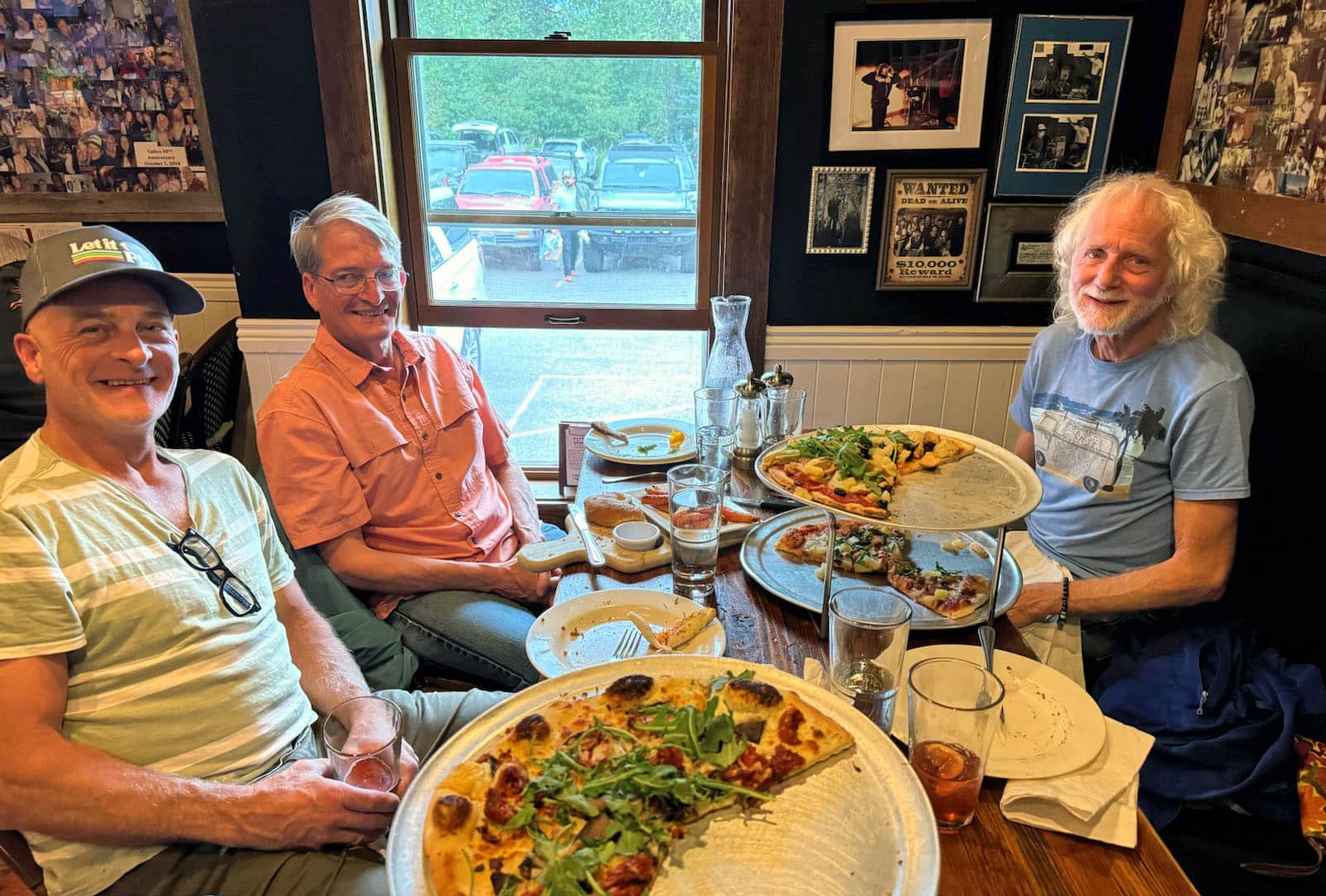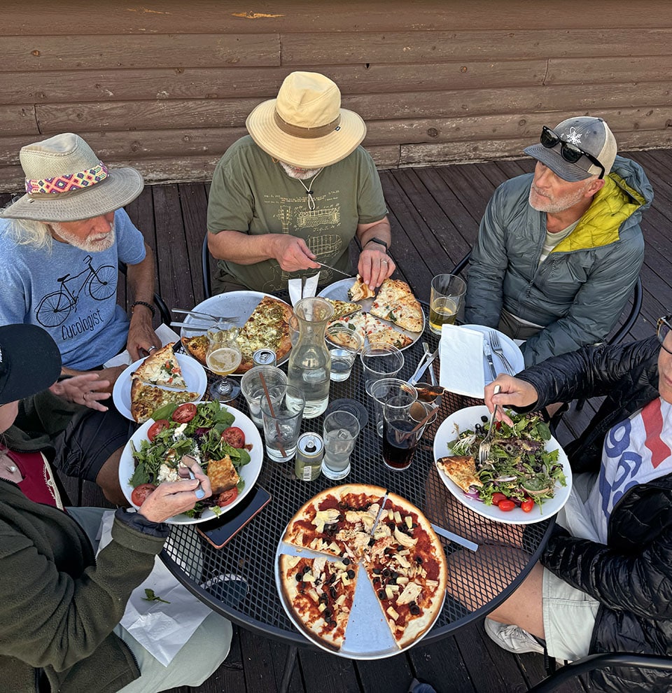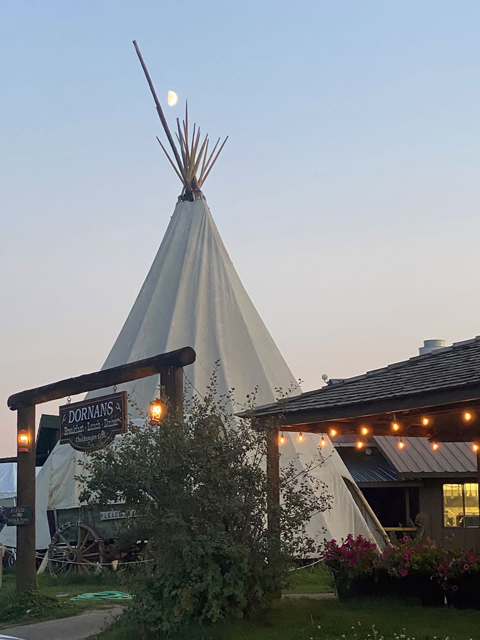 The view from Dornan’s Chuckwagon is spectacular! Janet joined us for breakfast with Erik & Nan under the Tetons. Photo credit goes to David for the Dornan’s teepee with full moon…as for Heidi’s gluten-free pizzas, Dornan’s was better than Calico’s in taste and value.