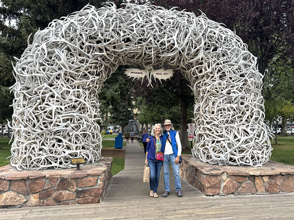A few days after Kirk’s surgery, he was as good as new, so we set off with Erik & Nan on a five-hour road trip through canyons and mountains. Don’t forget the Pringles and a stop for Huckleberry Milkshakes at Bear Lake—whoa! Whose car are we in?! We traversed in and out of three states (UT, ID, WY) and past a raging wildland fire near Smoot, Wyoming, on the way to Jackson Hole.