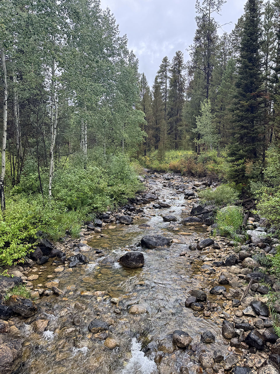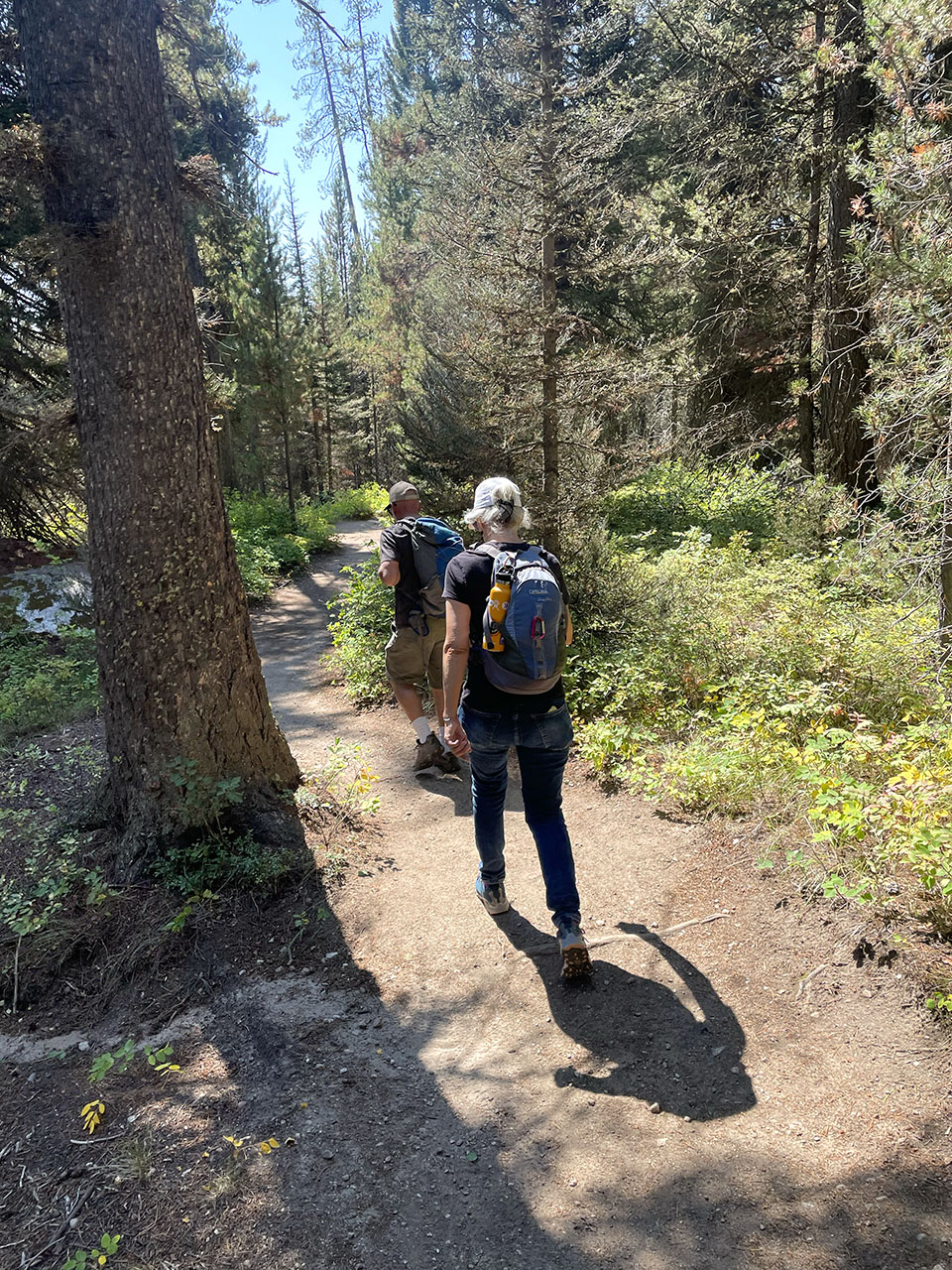 One part of our family gathering was to scatter Heidi’s stepmom, Willa’s ashes, in the Tetons, where we’d scattered our Dad, Verne’s, a few years ago. We took a recon hike the day before to check out the trail conditions before everyone else arrived. The day of our recon hike was rainy and cool, but thankfully, once everyone else arrived, the weather cleared, and we had a beautiful hike celebrating Willa.