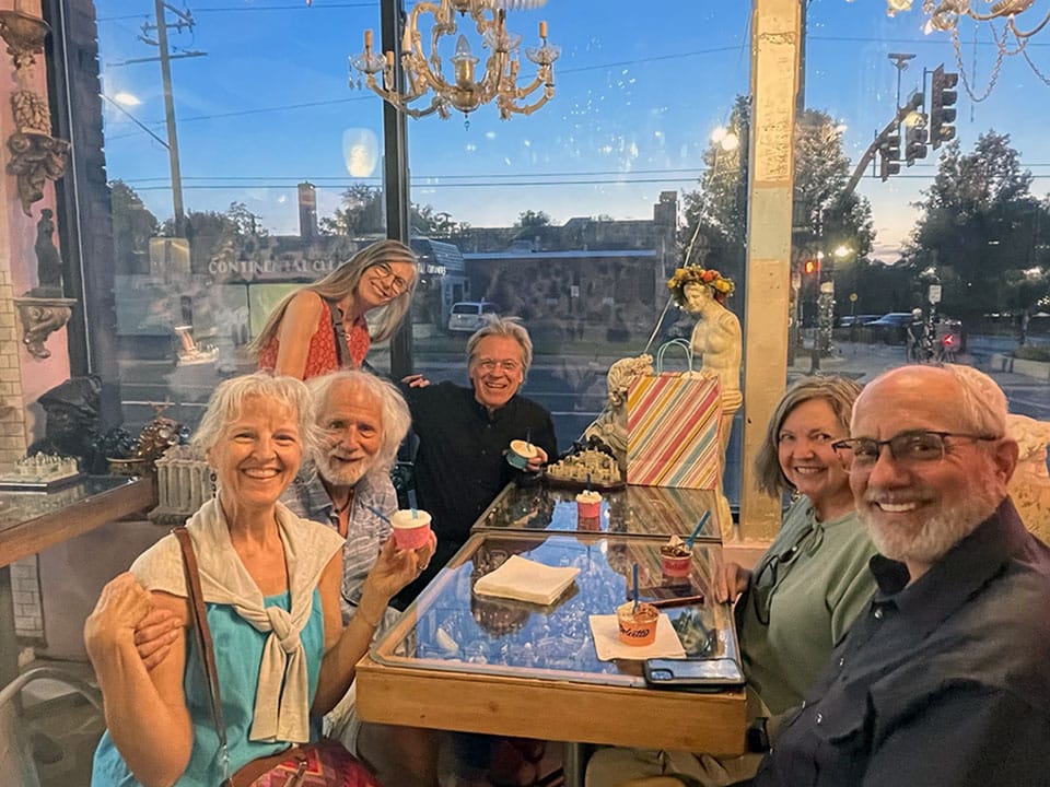 We flew back to Salt Lake City for one last night with Erik and Nan, picked up all our luggage (since we’d only taken overnight bags to Florida), and celebrated Kirk’s birthday with dinner at Vessel Kitchen followed by dessert at the kitchy and delicious Dolcetti Gelato. Not the best birthday gift Kirk has ever gotten—losing a brother the day before—but life has a way of weaving joy and grief together.