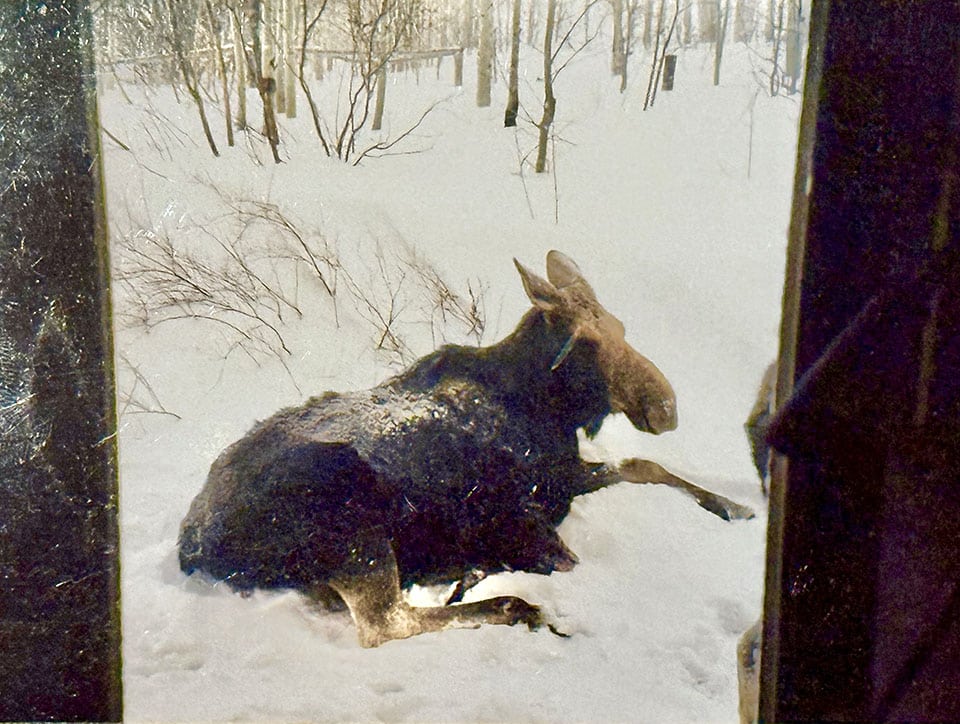We nearly missed seeing the moose at the Sawmill Pond…do you see it in the photo at left?! The moose at right frequently hung out on Heidi’s back deck when she was growing up.