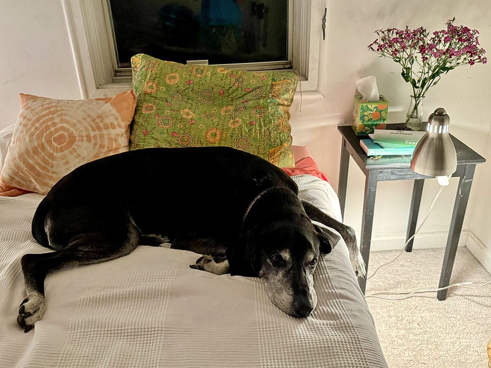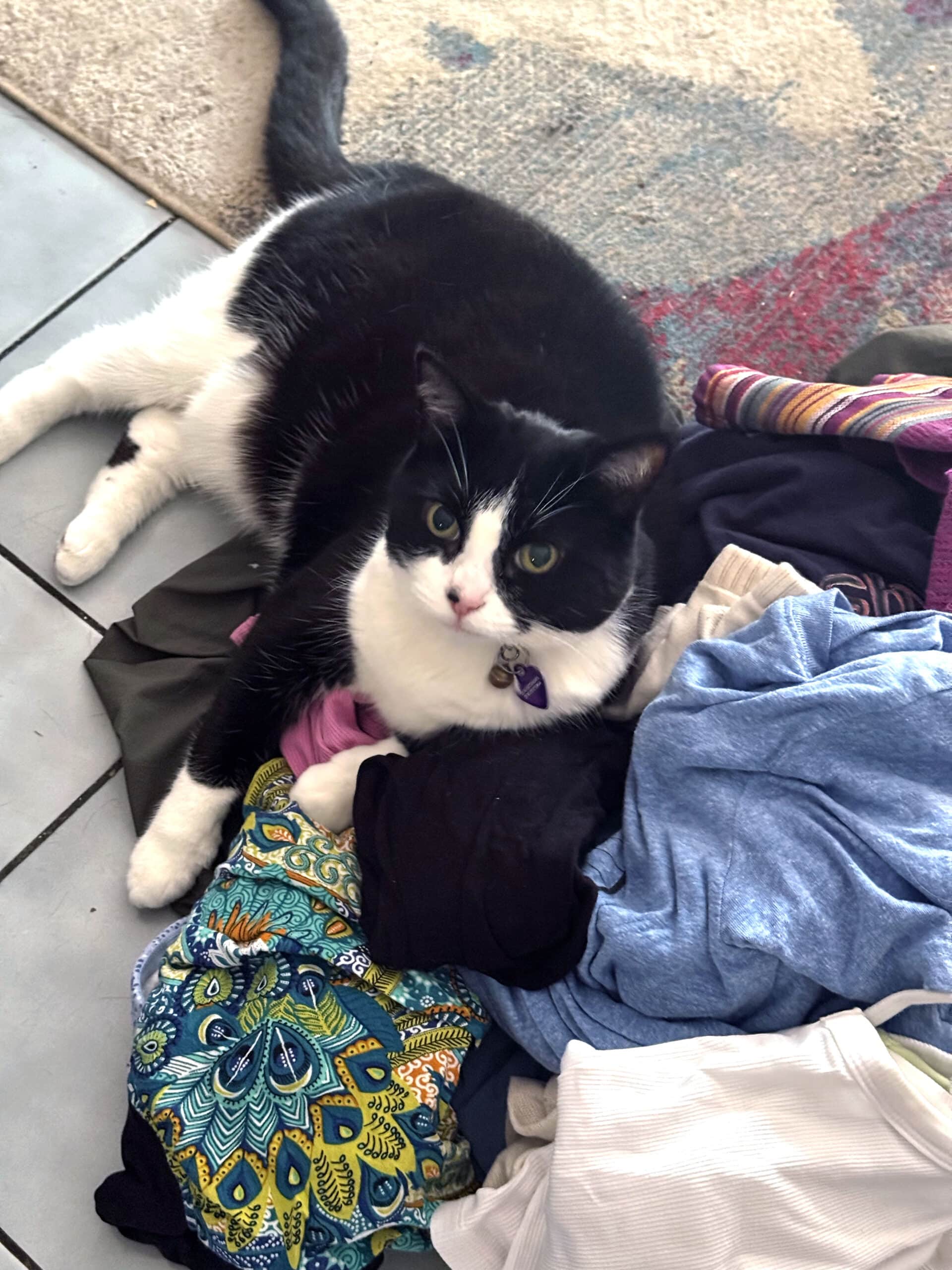 Tikka was thrilled to see us after almost a month away, and we’re so grateful to Lupita for taking such great care of her and Toopy, too. As soon as we got home, Tikka snuggled into our dirty laundry, LOL!