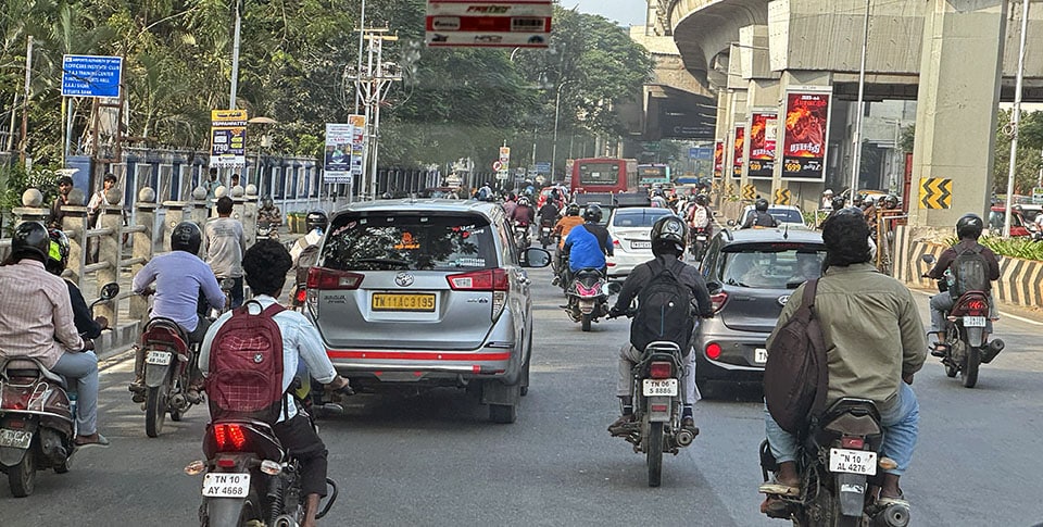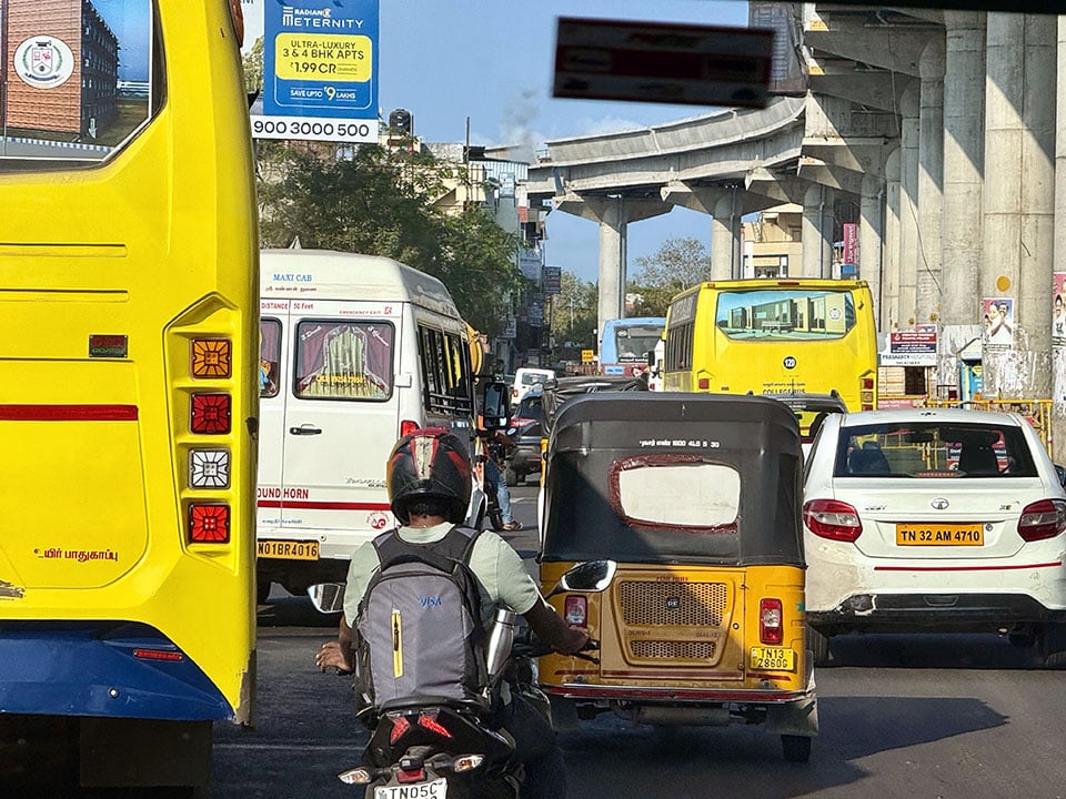 First impressions of India… Chennai airport customs and immigration were fast and efficient. And their bathrooms were cleaner and nicer than Mexico City or PVR bathrooms, with beautiful wall tiles, and “bum guns” in every stall. (In fact, throughout India, every bathroom we visited, even the lowliest roadside pit-stop squatty-potty, always had a “bum gun”! The US would do well to implement these.)