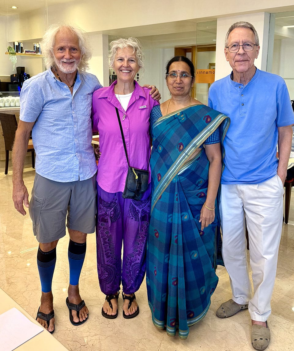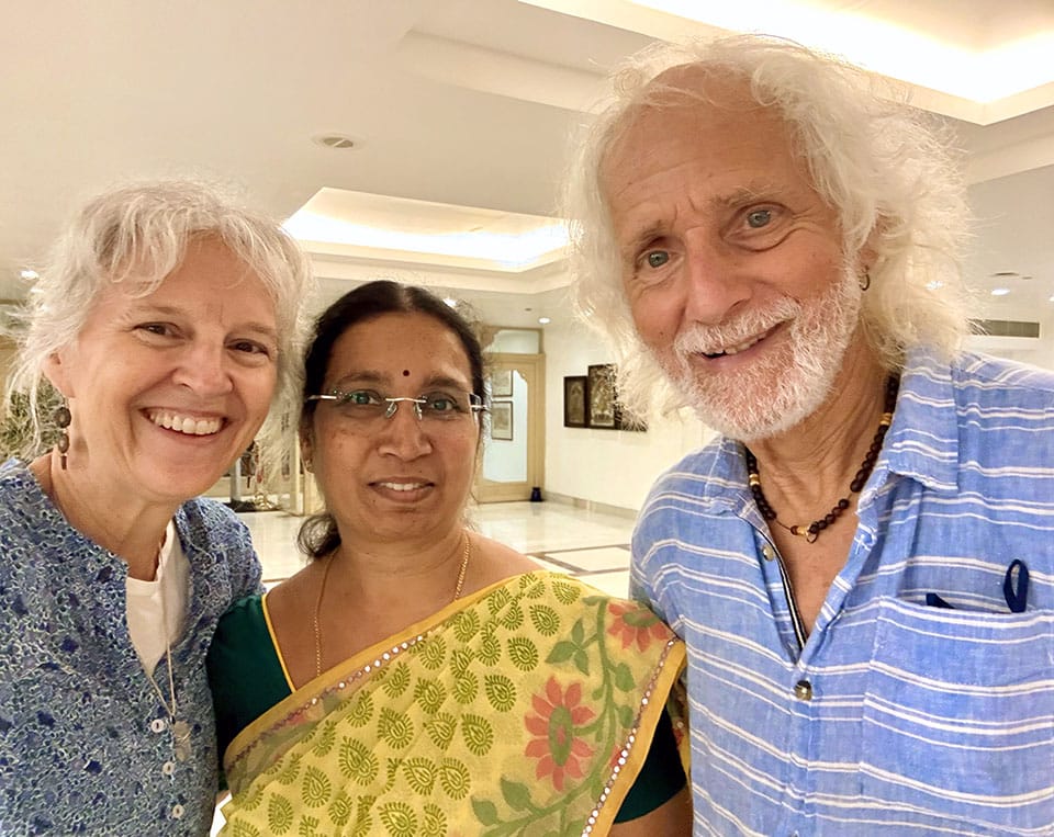 When we first met, Kirk let Heidi know that meditation was a big part of his life, and if she wanted to hang out with him, she might want to learn to meditate too. So she did, and we’ve been meditating together twice daily for 35+ years. For the past 15 years, we have been practicing Primordial Sound Meditation (Vedic mantra-based meditation) with Roger Gabriel, a British-born, US-based meditation teacher and Vedic scholar. You can join us to meditate with Roger live on Instagram several times a week (8:30 AM EST, and he also has thousands of past recorded meditations on his IG account and website). Roger has been leading small groups to India for the past 30+ years to meditate in sacred temples, shrines, and ashrams—and we have wanted to join him for many years.