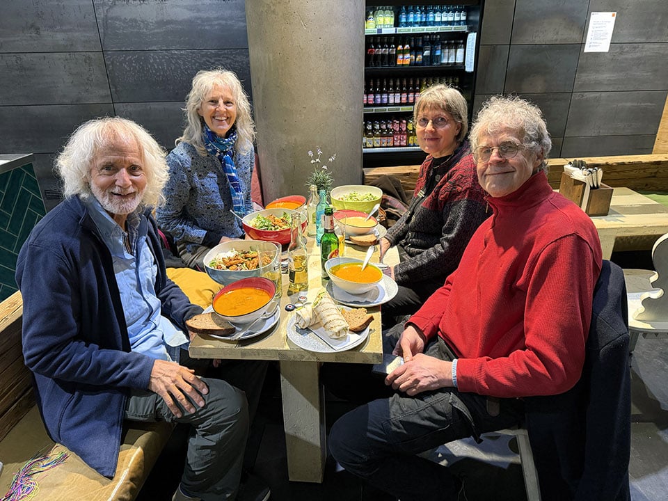 When Heidi‘s longtime Swedish friend Magdalena heard we would be flying through Frankfurt and overnighting there, she and her husband, Erik, decided to take a 10-hour train ride to Germany to meet up with us. And oh, what fun we had for six hours together!! Previously, we had only met Erik via Zoom, so it was great to finally meet him in person! Heidi and Magdalena were assigned as pen pals nearly 50 years ago, and have kept in great touch ever since, but have only met in person twice now. We cannot thank Magdalena and Erik enough for the warm welcome to Germany!