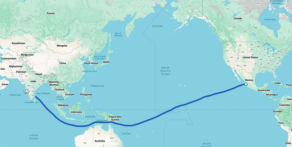 So how do you fly from Mexico to India?