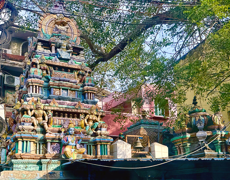 After our early morning wedding extravaganza, we took a nap, then met up with our tour group for an afternoon bus tour of Chennai, getting our first experience in Indian traffic! Old shops and houses are intermixed with new shopping centers, light rail towers, and Hindu roadside shrines. It’s a very eclectic look and feel. Traffic is organized chaos, with everyone beep-beeping to let you know they’re passing by. Somehow it all seems to work organically!