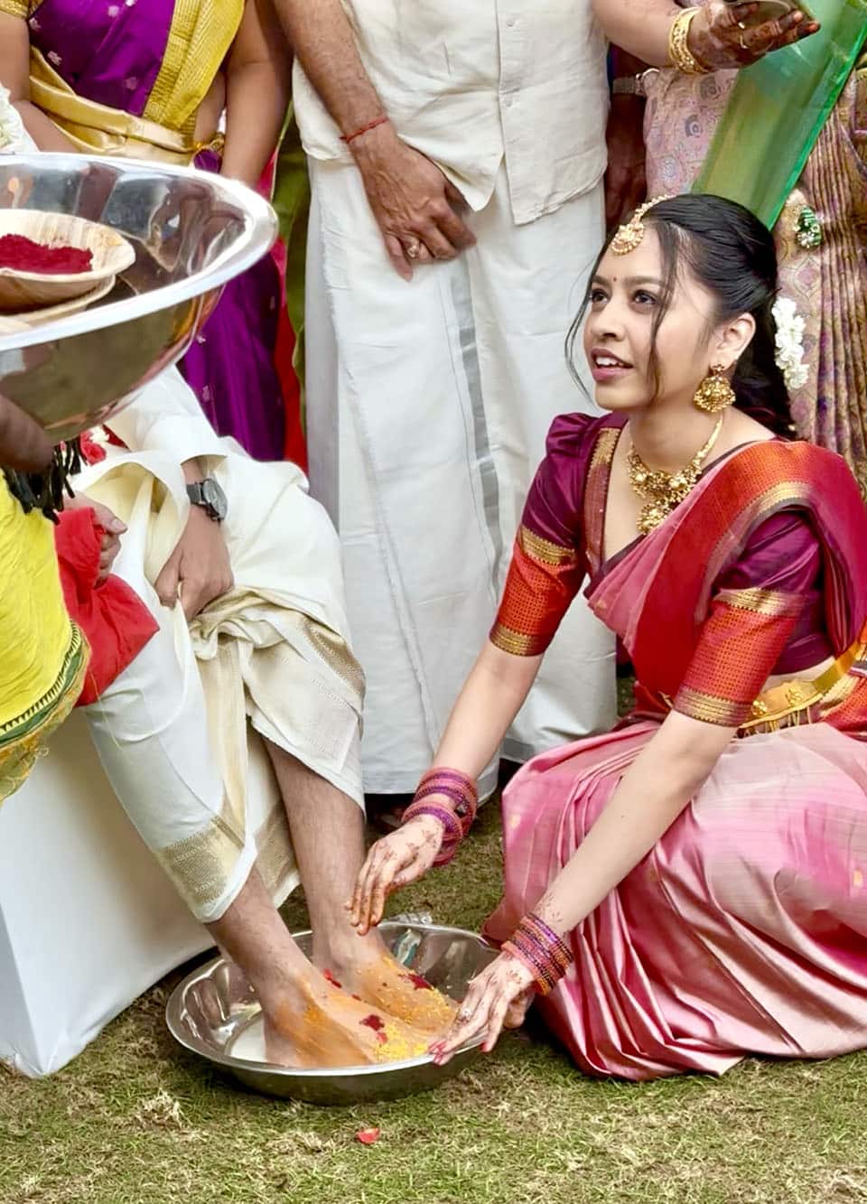 The wedding lasted about an hour with a break in the middle where everyone went outside (while the bride changed outfits), and the bride’s sister washed the groom’s feet to help welcome him into their family. Apparently, there are tons of nuances to Indian weddings, and weddings in the south can vary a lot from weddings in the north, and vice versa.