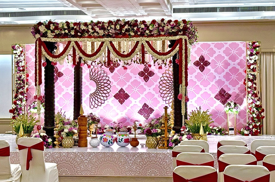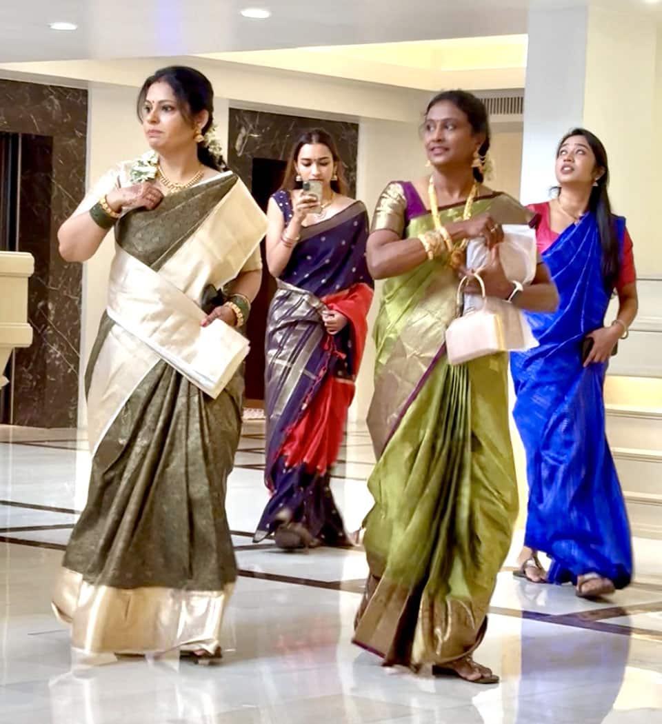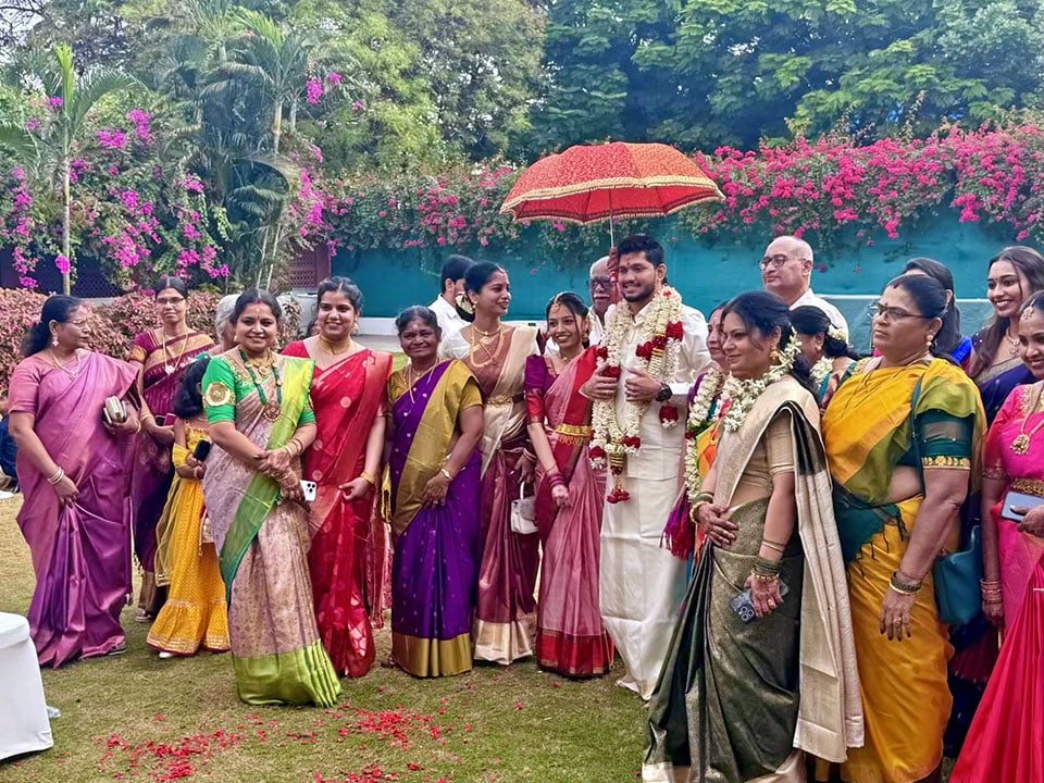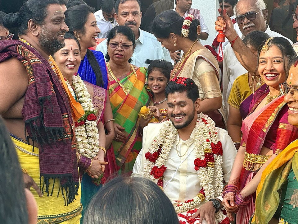 Maalai Maatral: The bride and groom try three times to garland each other as friends and family playfully lift or pull them back—celebrating love, laughter, and the joining of two families!
