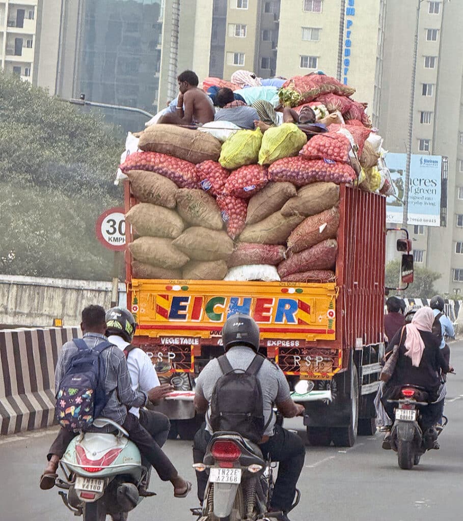 In the crazy world of airline rules and regulations, and things that make you go, huh?! We sat in an exit row on Lufthansa from Mexico City to Frankfurt, grateful for the extra legroom. However, when we returned to the Frankfurt airport after our overnight layover and prepared to board our Lufthansa flight to Chennai, they told us they would have to reseat us. “Senior citizens cannot sit in the exit row.” Really? Cuz we just spent the last 10 hours in the exit row. Kirk does both yoga and Pilates three times a week, and is in far better shape than many much younger people. Heidi also does Pilates three times a week, and is only 62, so technically not a “senior citizen“ yet, but who’s counting? How nice that they re-seated us in seats H and K, LOL!